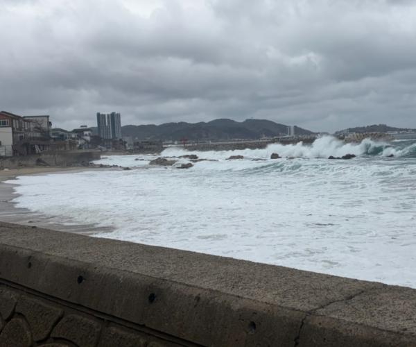 기상청에 따르면 6일 오전부터 동해안 해안가와 해상을 중심으로 최대풍속 초속 14m 이상 강한 동풍이 불면서 최대 3.5m의 높은 물결이 일 것으로 전망하고 있으며 당분간 지속적 너울이 연안에 도래할 것으로 예측하고 있다.