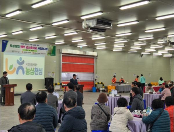 전남 곡성군은 지난 18일 곡성읍에 소재한 농산물산지유통센터(APC)에서 열린 2025년 멜론 공선출하회 사업평가회에 참석해 농협 조합원 및 관계자들을 격려했다고 20일 밝혔다. 이날 행사에는 곡성군수를