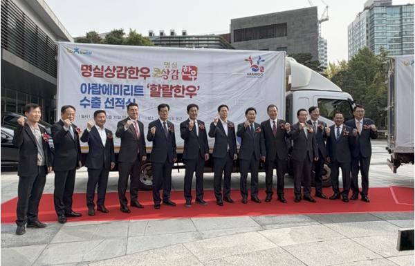 상주축산농협은 2025년 10월 30일 오후 1시 농협중앙회 본관에서 명실상감한우 아랍에미리트(UAE) 할랄한우 수출 선적식을 개최하고, 대한민국 대표 한우 브랜드의 해외시장 진출을 공식 선언했다.이번 선적