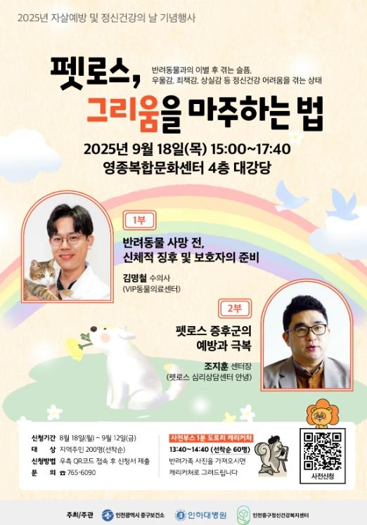 인천중구정신건강복지센터는 오는 9월 18일 오후 3시 영종복합문화센터 4층 대강당에서 ‘2025년 자살예방 및 정신건강의 날 기념행사’를 개최한다. 이번 행사는 ‘자살 예방의 날(9월 10일)’과 ‘정신건