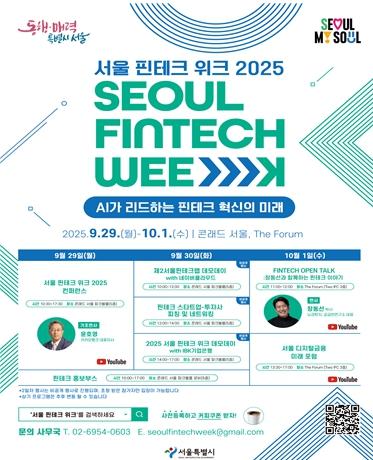 서울시가 글로벌 핀테크 행사인 ‘서울핀테크위크 2025’를 오는 9월 29일부터 10월 1일까지 여의도 콘래드 호텔 등에서 개최한다. ‘서울핀테크위크’는 글로벌 디지털 금융 전문가, 금융기관 관계자, 국