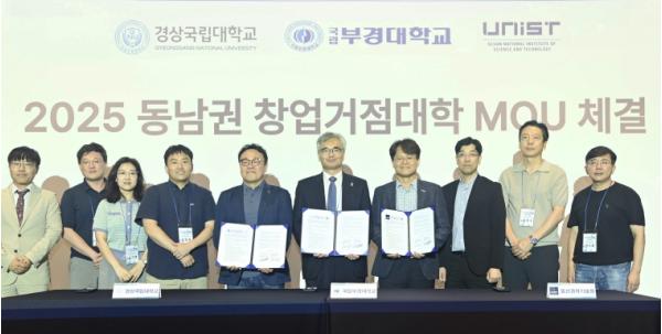 경상국립대학교(GNU·총장 권진회) 산학협력단/창업지원단(단장 최병근)은 8월 7일 부산 라발스호텔에서 국립부경대학교 산학협력단(단장 진영읍), UNIST 산학협력단(단장 김영식)과 동남권 창업지원 협업 활