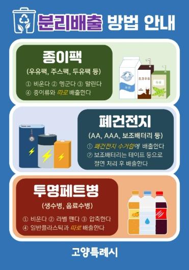 고양시, 폐건전지·종이팩·투명페트병 분리배출 당부