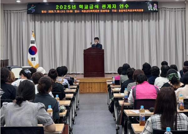 옥천교육지원청이 7월 30일 13시 옥천군다목적회관에서 관내 유·초·중·고 조리사, 조리실무사 73명을 대상으로 2025년 학교급식 관계자 연수를 실시했다.이번 연수는 학교급식 관계자의 역량을 강화해 안전