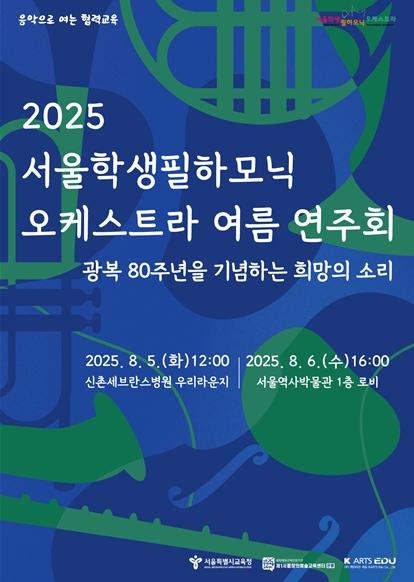 서울특별시교육청은 ‘광복 80주년을 기념하는 희망의 소리’를 부제로 ‘2025 서울학생필하모닉오케스트라 여름연주회’를 8월 5일, 8월 6일 양일간 개최한다. 연주회는 1일차인 8월 5일 낮 12시 신촌세브