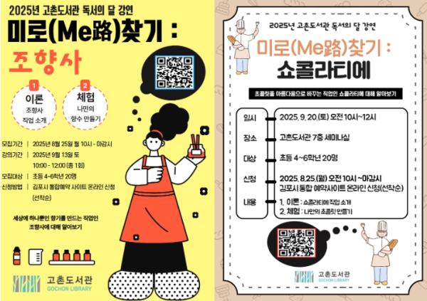 김포시는 독서의 달 강연프로그램 ‘미로(Me路)찾기 : 조향사, 쇼콜라티에’를 10시부터 12시까지 고촌도서관 7층 세미나실에서 운영한다. ‘미로(Me路)찾기 : 조향사’는 세상에 하나뿐인 향기를 만드는 직