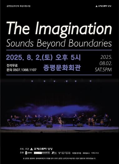 충북 증평군은 오는 8월 2일 오후 5시 증평문화회관에서 오케스트라 상상(예술감독 유용성)의 창작공연 ‘The Imagination: Sounds Beyond Boundaries’를 선보인다고 밝혔다.이번 공연은 충청북도와 충북문