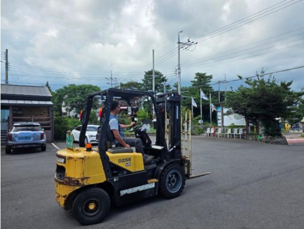 제주특별자치도가 올해 처음 추진하는 ‘2025년도 건설기계 전동화 개조 지원 사업’으로 지난 7월 서귀포시 남원읍 한남리에 도입된 전기 지게차가 주민들 사이에서 호평을 받고 있다. 한남리 마을회 관계