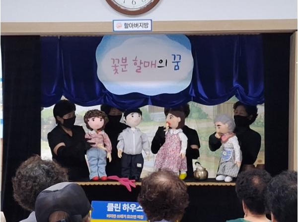 부여군 충화면 천당1리 마을회관에서 지난 8월 26일 오후 2시 천당1리 주민 20여 명을 대상으로 ‘꽃분 할매의 꿈’이라는 환경 인형극이 열렸다.부여여성공동체(대표 심재숙)가 공연하는 환경 인형극은 부
