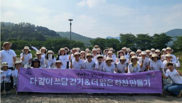 순천시는 지난 26일 민‧관 사회복지종사자 55명이 참석한 가운데 서면 서천변 일대에서‘다같이 쓰담(쓰레기 담기의 줄임말) 걷기’를 성황리 추진했다고 밝혔다. 이번 ‘쓰담 걷기’는 민‧관 합동 생태복