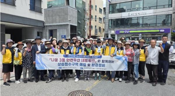 나운3동행정복지센터는 ‘안전우산네트워크’ 관계 기관과 함께 빗물받이 점검 등 장마철을 대비한 상습 침수구역 예찰 활동을 진행했다.지난 19일에 진행된 이번 활동은 나운3동에서 발족한 마을자치형 재
