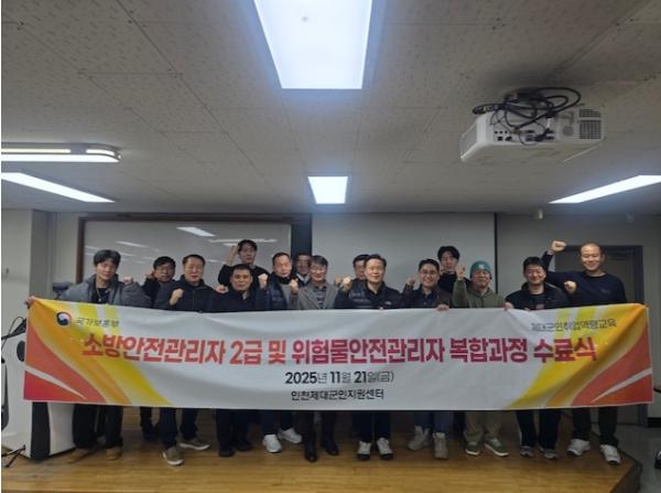 국가보훈부 인천보훈지청 제대군인지원센터는 11월 21일 중·장기복무 제대(예정)군인 대상으로 한국인성평생교육원에서 진행한'소방안전관리자 2급 및 위험물안전관리자 복합과정 취득'수료식을 가졌다. ‘