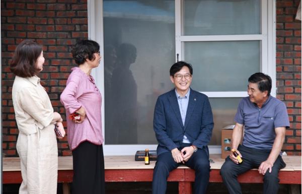 우승희 영암군수가 ‘제80주년 광복절’을 앞둔 7일 덕진면 출신 독립운동가 이명범 애국지사의 유족을 찾아 위문했다. 이 애국지사 손자인 이윤행 씨의 덕진면 냉천동마을 집을 방문한 우승희 영암군수는,