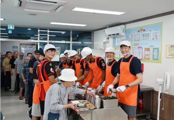 강릉시민축구단, 강릉시 노인종합복지관에서‘점심 급식 봉사’진행