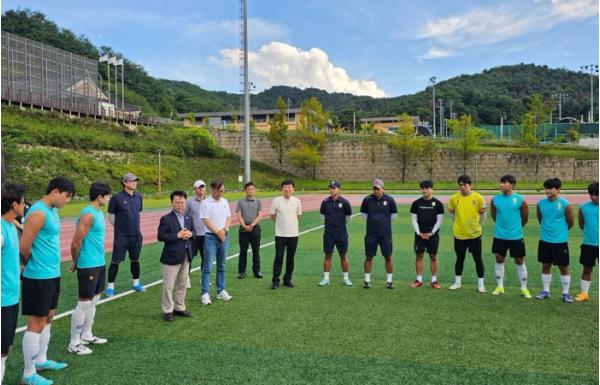 육동한 춘천시장, 춘천시민 축구단 훈련 현장 찾아 격려