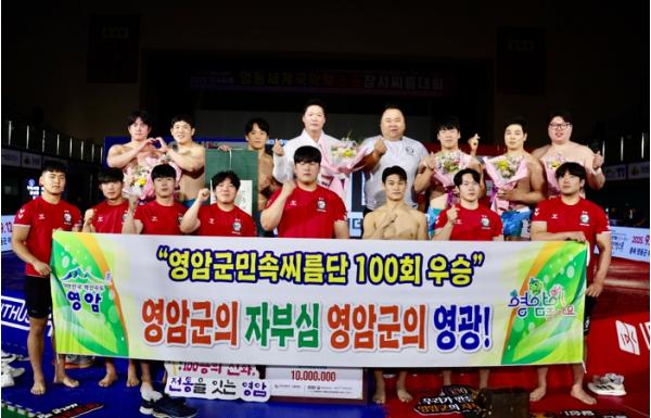 영암군민속씨름단, 창단 이래 통산 100회 꽃가마