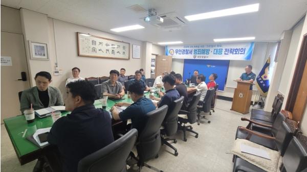 무안경찰서는 여름철 기초질서 확립 및 군민의 안전한 일상 확보를 위한 방안을 모색했다. 이날 회의는 28일 오전 경찰서 2층 회의실에서 경찰서장 주재로 각 과·계장 및 지·파출소장 등 17명이 모두 참여한