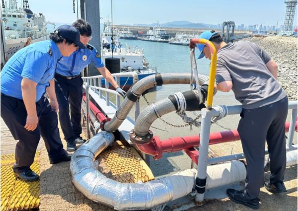 중부지방해양경찰청 서해5도특별경비단은 28일 인천 해경 전용부두에서 연일 지속되는 폭염 속 중대재해 예방 및 설비 운용 신뢰도 제고를 위해 주요 설비 집중점검을 실시했다고 밝혔다. 함정 전용부두는