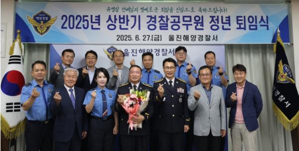 울진해양경찰서는 지난 27일 오후 1시, 본서 3층 회의실에서 유영삼 경감의 정년퇴임식을 개최하며, 국가와 국민을 위해 평생을 바쳐온 공직자의 마지막 발걸음을 존중과 감사의 마음으로 배웅했다. 이번 퇴