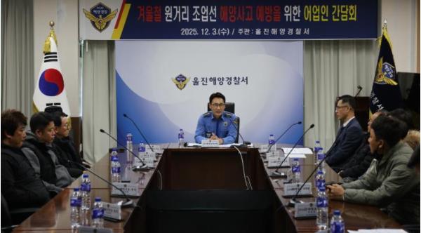 울진해양경찰서는 3일 겨울철 해양사고 예방을 위한 원거리 조업선 어업인 간담회를 개최했다고 밝혔다.이번 간담회에는 울진해양경찰서를 비롯해 울진어선안전조업국, 죽변, 후포, 강구 관할 원거리 조업선