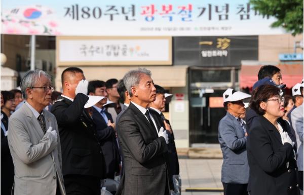 행사에는 윤환 구청장을 비롯해 간부 공무원, 광복회원, 보훈단체장, 시·구의원, 국회의원, 사회단체장, 주민 등 150여 명이 참석했으며, 국민의례, 헌화 및 분향, 경축사, 기념 공연, 광복절 노래 제창, 만세삼창 순으로 진행됐다.