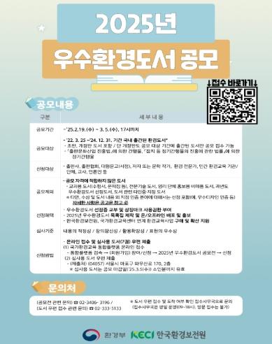 이들 우수환경도서는 최근 3년간(2022.3.25.~2024.12.31.) 국내에서 출간된 환경 주제 책(번역서 포함) 중에서 올해 2월 19일부터 3월 5일까지 진행된 공모전을 통해 선정됐다.