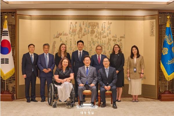 이재명 대통령은 18일 오후, 방한 중인 '태미 덕워스(Tammy Duckworth)' 상원의원 및 '앤디 킴(Andy Kim)' 상원의원을 접견하고, 한미동맹 강화, 한미 경제협력 증진, 지역 및 국제 정세 등에 대해 의견을 교환했다.