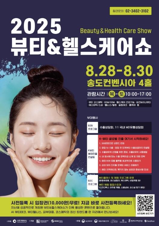 인천광역시가 주최하고, 인천관광공사과 ㈜세계전람이 공동 주관하는 인천 최대 뷰티 및 헬스케어 산업 전문 전시회인‘뷰티·헬스케어쇼’가 8월 28일부터 30일까지 3일간 송도컨벤시아에서 개최된다.