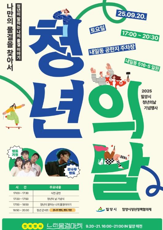 한편, 이번 청년의 날 행사는 밀양소통협력센터의 느린물결마켓과 연계해 더욱 청년 친화적인 프로그램으로 운영될 예정이다.