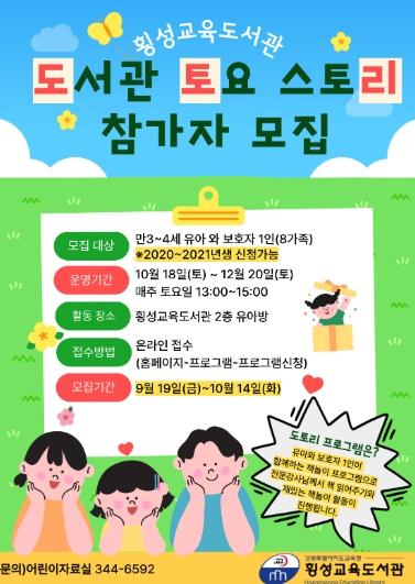 횡성교육도서관은 10월 18일부터 12월 20일까지 10회에 걸쳐 ‘유아 책 놀이 프로그램인 도토리(도서관 토요 스토리)’를 운영한다고 밝혔다.