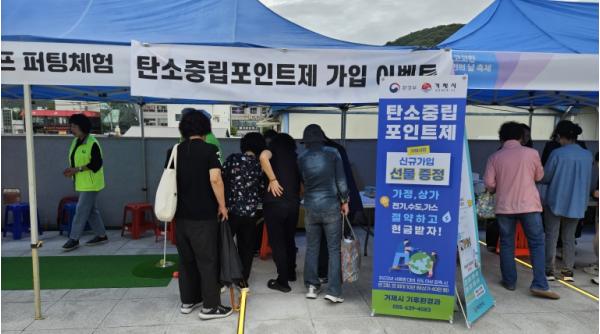 시는 시민들이 많이 찾는 10월 면·동 축제 현장에서 홍보부스를 운영해 시민 밀착형 홍보를 강화했다. 지난 18일에는 사등면·고현동·수양동, 25일에는 장평동·아주동 축제 행사장을 찾아 ‘탄소중립포인트제’를 안내하고 현장 가입을 받는 한편, 탄소중립 실천 방법 등을 소개하며 시민참여를 이끌었다.