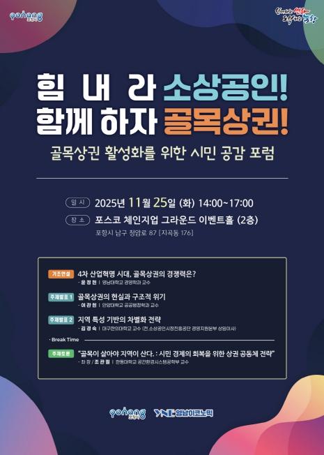 포항시 관계자는 “이번 포럼은 선언적 행사나 이벤트가 아니라 실행 가능한 정책을 만들어 가는 출발점”이라며 “골목상권을 살리는 일은 소상공인만의 과제가 아니라 시민 모두의 삶과 직결된 문제인 만큼 많은 시민과 상인의 참여를 바란다”고 말했다.