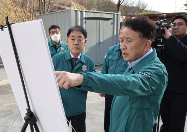 김영환 충북도지사는 11월 20일 영동군 거점소독시설을 찾아 영동군의 고병원성 조류인플루엔자(AI) 방역 상황을 긴급 점검했다.
