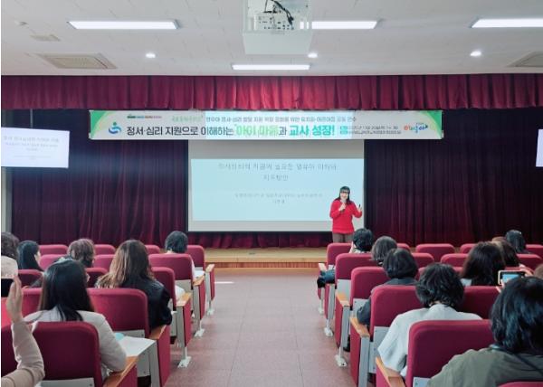 경상남도교육청은 20일 경상남도교육청 교육정보원에서 유치원 교원과 어린이집 보육교직원 100명을 대상으로 ‘정서·심리 지원으로 이해하는 아이 마음과 교사 성장!’연수를 개최했다. 오는 27일에도 경상국립대학교에서 100명을 대상으로 연수를 진행할 예정이다.