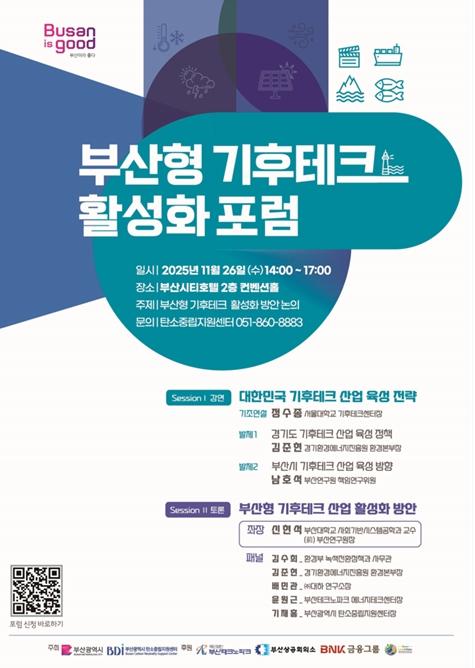 부산시는 기후테크 산업 육성 및 지역 중소기업의 역량 강화를 위해 '부산형 기후테크 활성화 포럼'을 오늘(26일) 오후2시 부산시티호텔에서 개최한다고 밝혔다.