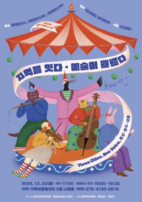 크리스마스 및 연말 시기에 맞춰 시민의 문화향유 기회를 확대하고, 충청권 거버넌스 간 협력과 교류를 강화하기 위해 마련된 이번 행사는 충청권인 홍성·충주·세종 각 지역의 전문예술단체가 참여해 공동으로 기획한 광역 연대 공연으로, 예술을 매개로 도시 간 연대와 협력의 과정을 무대 위에서 구현한 장르융합 공연이다. 성악, 뮤지컬, 현악, 밴드 등 서로 다른 장르의 예술이 하나의 흐름으로 연결되며, 각 지역이 지닌 문화적 정체성과 감성이 하나의 서사로 펼쳐지는 것이 특징이다. 공연 부제인 ‘Three Cities, One Voice’에는 세 도시가 각자의 고유한 색깔을 유지하면서도 하나의 무대를 완성한다는 의미가 담겨 있다.