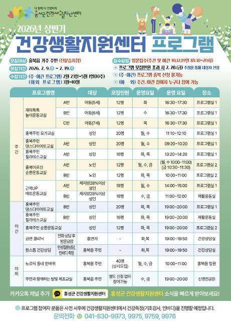 홍성군 건강생활지원센터는 홍북읍 주민의 체력 증진과 건강한 생활습관 형성을 위해 2026년 신체활동 프로그램을 총 3기로 운영할 예정이며, 내달 9일부터 19일까지 1기 참여자를 모집한다.