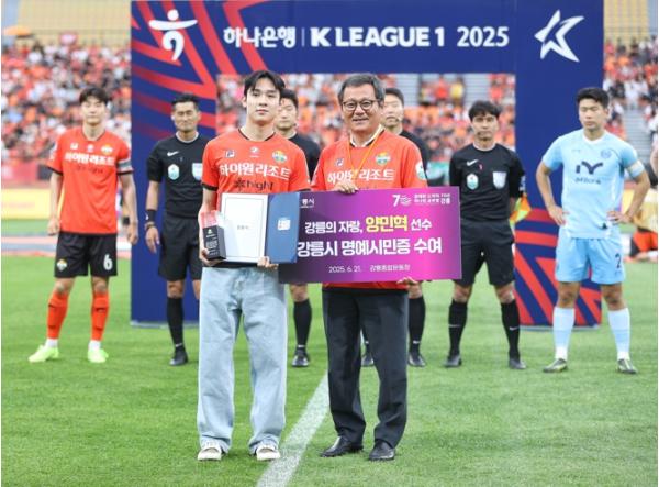 강릉시는 오는 21일 오후 7시 강릉종합운동장에서 열리는 2025 강원FC 강릉 홈경기 개막전에 앞서, 수많은 홈팬들의 응원 속에서 양민혁 선수에게 강릉시 명예시민증서를 수여한다.