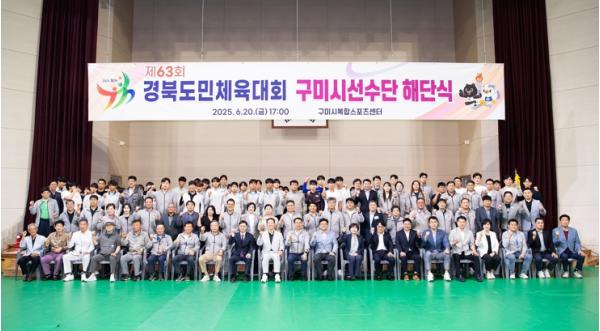 구미시는 지난 20일 복합스포츠센터 2층 다목적체육관에서 ‘제63회 경북도민체육대회 선수단 해단식’을 개최했다. 이날 행사에는 김장호 구미시장, 도·시의원, 기관단체장, 관내 학교장, 체육회 임원, 선수 등 500여 명이 참석했다.