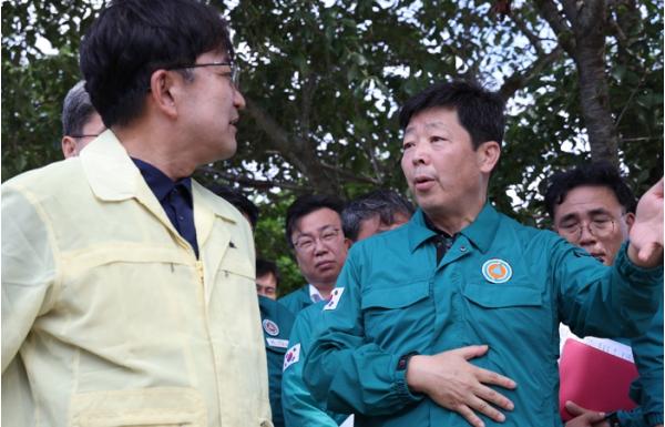 박정주 충남도 행정부지사가 김광용 행정안전부 재난안전관리본부장에게 최근 폭우에 따른 추가 특별재난지역을 신속하게 지정해 줄 것을 요청했다.
