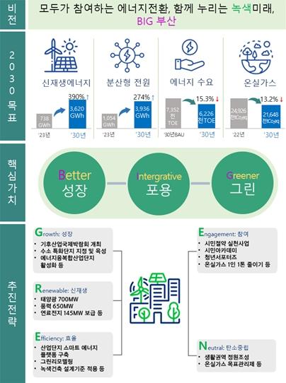2020년의 6차 계획에 이은 이번 제7차 계획은 '모두가 참여하는 에너지전환, 함께 누리는 녹색미래, 빅(BIG) 부산'을 비전으로, ▲신재생에너지 ▲분산형 전원 ▲에너지 수요 ▲온실가스에 관한 내용을 목표로 수립됐다.