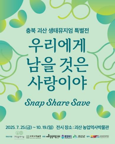 특별전은 “SNAP SHARE SAVE '우리에게 남을 것은 사랑이야'”주제로 예술을 통해 관람객들이 멸종위기 동물들과 깊이 공감하고 환경보호를 위한 실질적인 행동으로 나아갈 수 있도록 하기 위해 기획됐으며, 총 8명의 국내·외 작가들이 참여해 멸종위기 동물들을 주제로 회화, 디지털드로잉, 조각, 사진 등 200여 점을 선보인다.