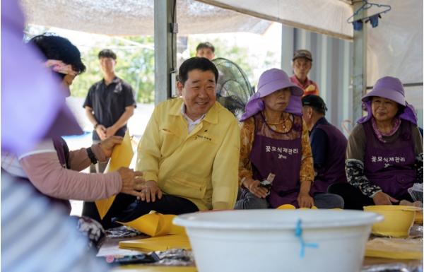 보강천 꽃묘장을 찾아 근로자들의 건강 상태와 작업 환경을 살펴보고, 폭염 대응 안전수칙 준수 여부를 점검하며 충분한 휴식과 수분 섭취를 당부했다.