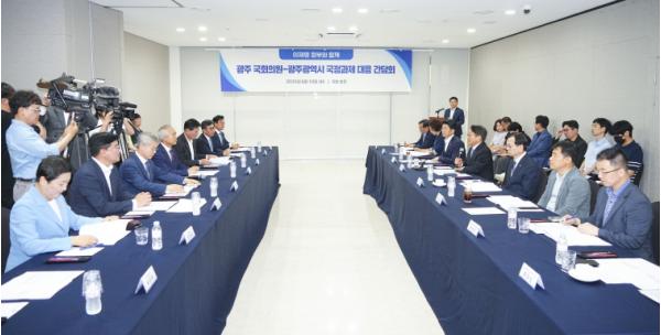 이날 간담회에는 양부남 더불어민주당 광주시당 위원장과 정진욱·안도걸·조인철‧정준호·전진숙·박균택‧민형배 국회의원 등 지역 국회의원 8명 전원이 참석, 의미를 더했다. 광주시에서는 강기정 시장과 실국장들이 자리했다.