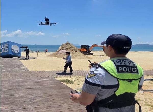 완도해양경찰서 완도파출소는 여름철 피서객 증가에 따라 연안 안전사고 예방을 위해 드론을 활용한 입체적 순찰에 나섰다.