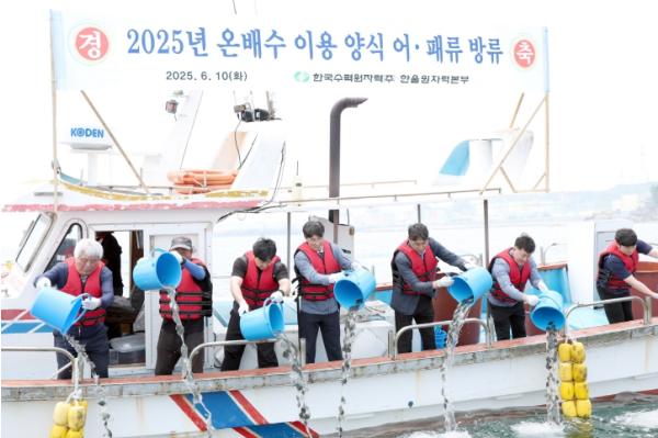 한국수력원자력(주) 한울원자력본부는 6월 10일 한울본부장, 어촌계장협의회장 및 어민대표들과 함께 울진군 석호항에서 원전 온배수로 키운 어패류 방류행사를 시행했다.